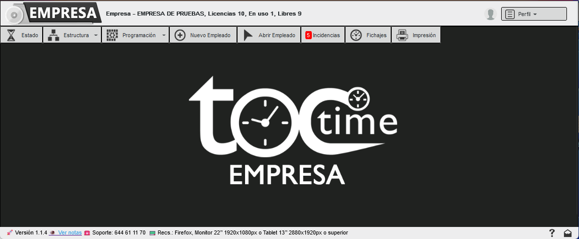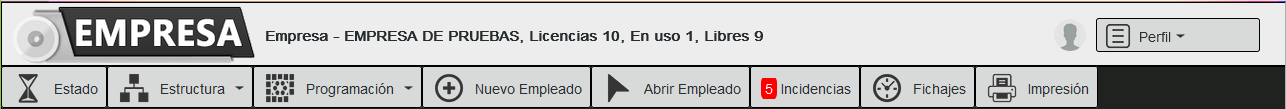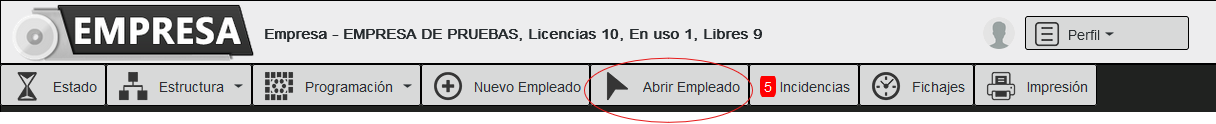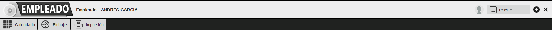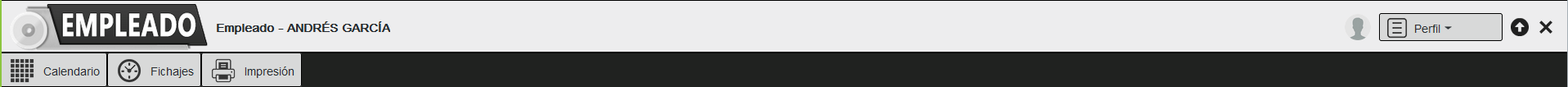En esta pantalla podemos acceder al perfil, calendario, fichajes e impresión del empleado.