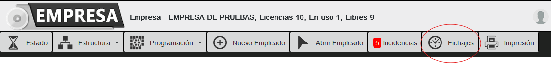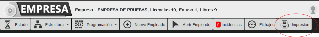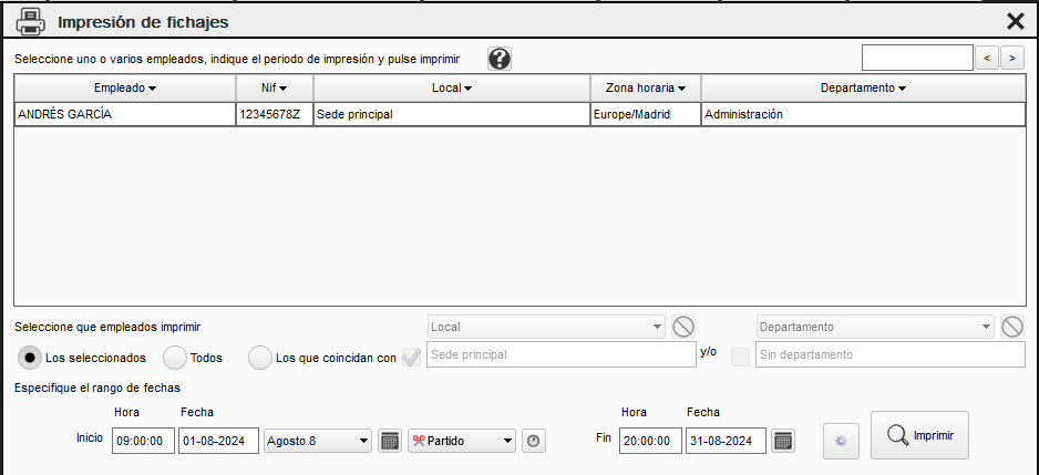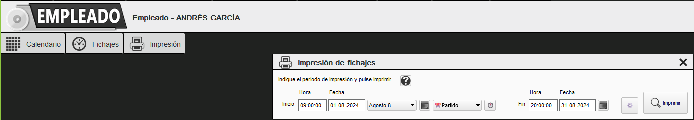 Desde esta pantalla podemos imprimir en pdf los fichajes del empleado.