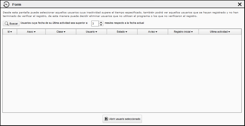 Desde esta pantalla puede seleccionar aquellos usuarios cuya inactividad supere el tiempo especificado.