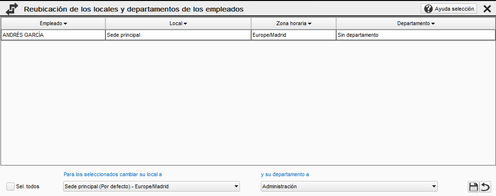 Con esta opción podemos seleccionar empleados y acceder a su panel de control.