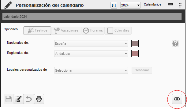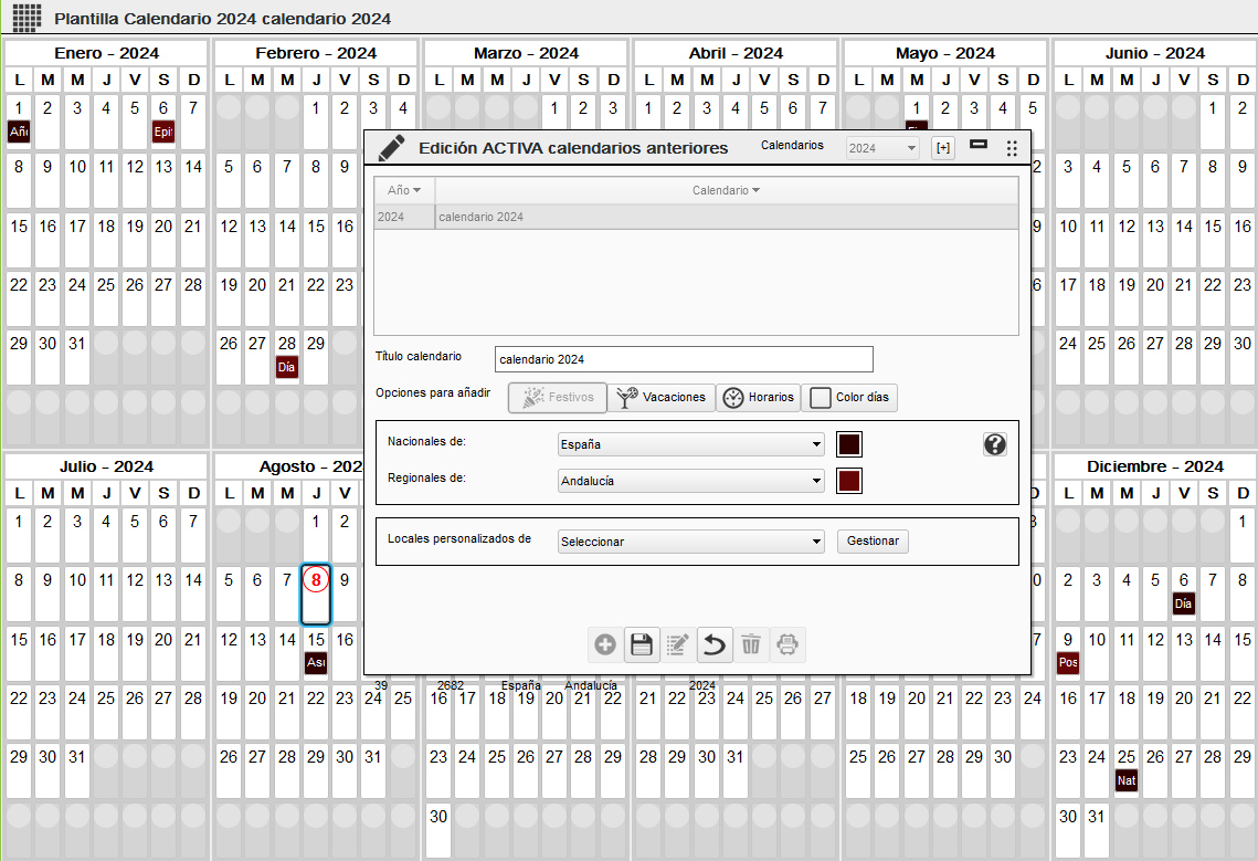 El funcionamiento es similar al calendario de la empresa, pero hay un apartado importante a tener en cuenta, es la siguiente pantalla: