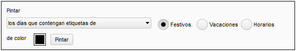 Esta opción sirve para pintar con colores diferentes los días del calendario, de esta manera diferenciamos los fines de semana, las vacaciones, etc.