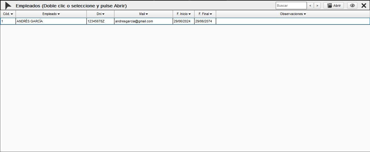 Desde esta opción visualizamos los empleados y los seleccionamos accediendo a su panel de gestión.