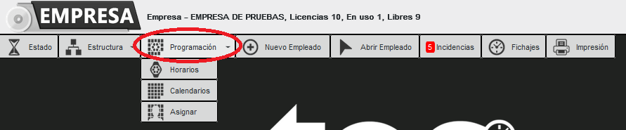 Pantalla utilizada para gestionar los horarios de los empleados, los calendarios de la empresa o entidad y su asignación a los diferentes destinatarios.