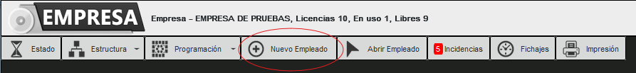 Desde esta pantalla daremos de alta los empleados que deben fichar.